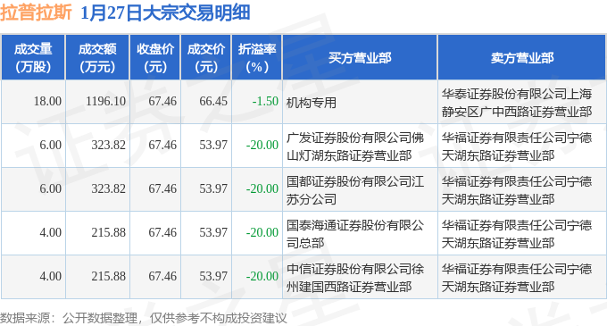 证券之星消息,1月27日拉普拉斯发生大宗交易,交易数据如下: