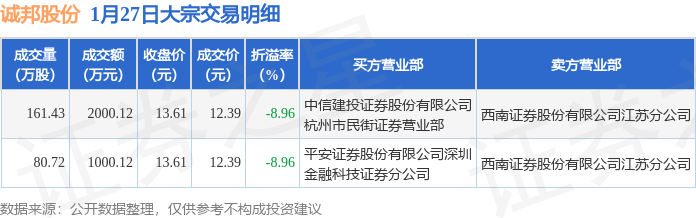 证券之星消息,1月27日诚邦股份发生大宗交易,交易数据如下: