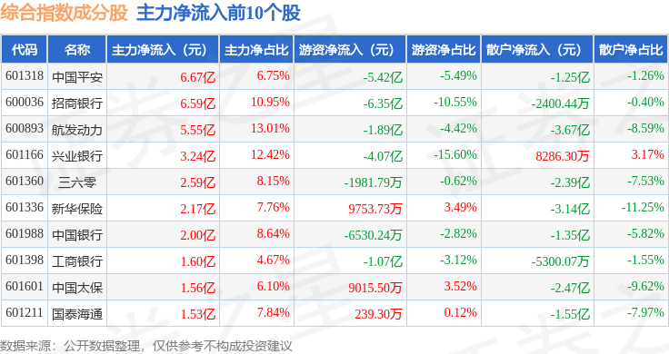 资金流向方面,综合指数(000008)成份股当日主力资金净流出合计16.68亿元,游资资金净流入合计5.74亿元,散户资金净流入合计10.95亿元。成份股资金流向详情见下表: