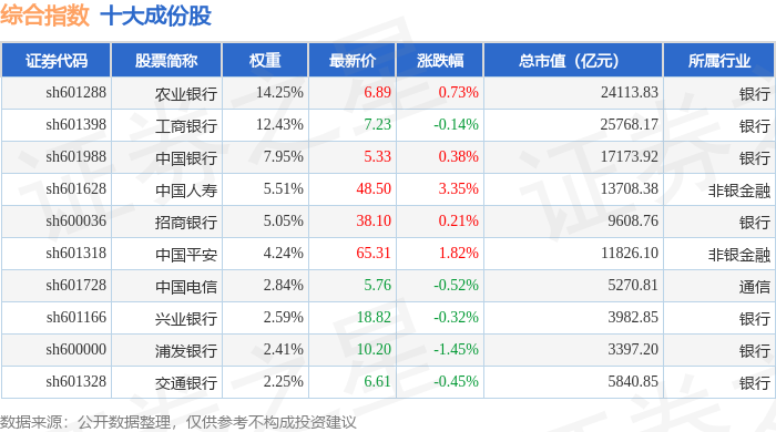综合指数(000008)十大成份股详情如下: