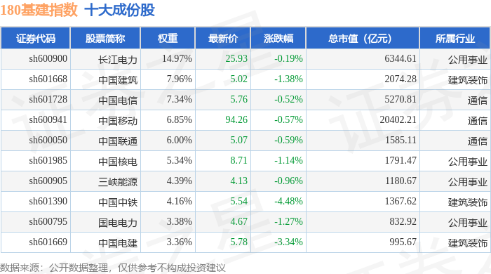 180基建(000025)指数十大成份股详情如下: