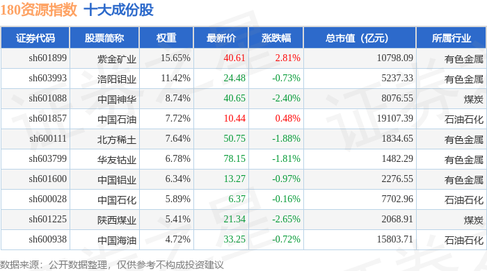 180资源(000026)指数十大成份股详情如下: