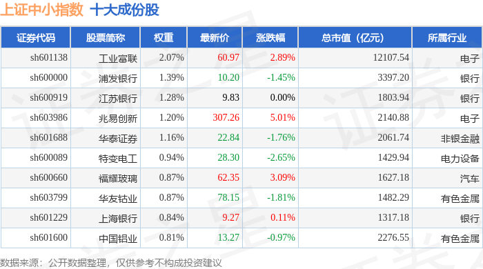 上证中小(000046)指数十大成份股详情如下: