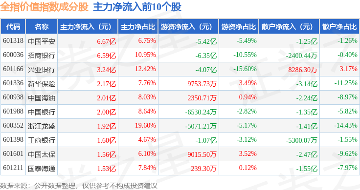资金流向方面,全指价值(000058)指数成份股当日主力资金净流出合计28.62亿元,游资资金净流入合计16.45亿元,散户资金净流入合计12.17亿元。成份股资金流向详情见下表: