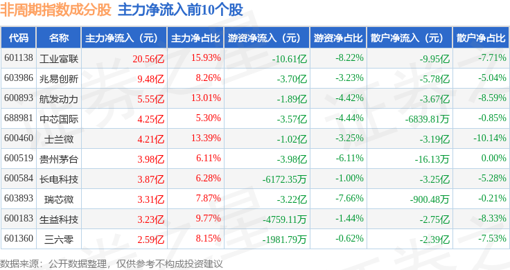 资金流向方面,非周期(000064)指数成份股当日主力资金净流入合计2.69亿元,游资资金净流入合计4800.32万元,散户资金净流出合计3.17亿元。成份股资金流向详情见下表: