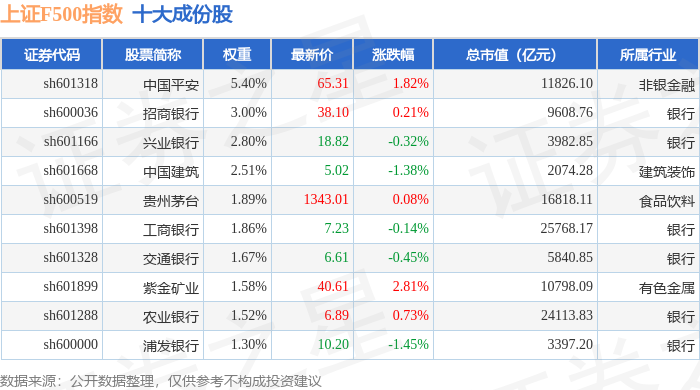 上证F500(000100)指数十大成份股详情如下: