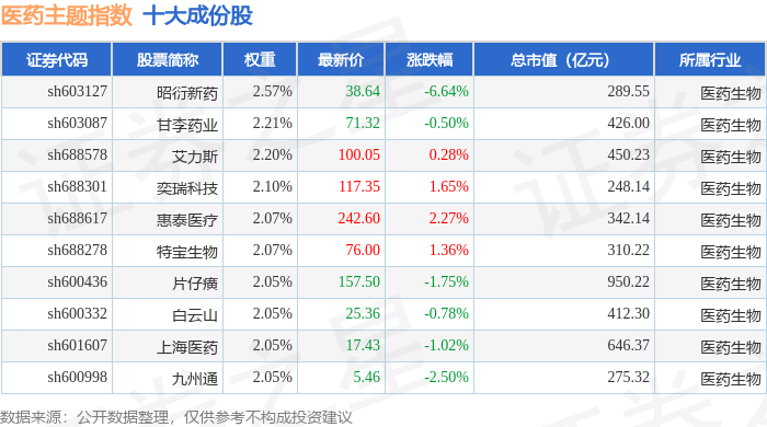证券之星消息,1月27日,医药主题(000121)指数报收于8259.66点,跌0.74%,成交297.6亿元,换手率1.94%。当日该指数成份股中,上涨的有13家,三生国健以10.93%的涨幅领涨,下跌的有36家,昭衍新药以6.64%的跌幅领跌。