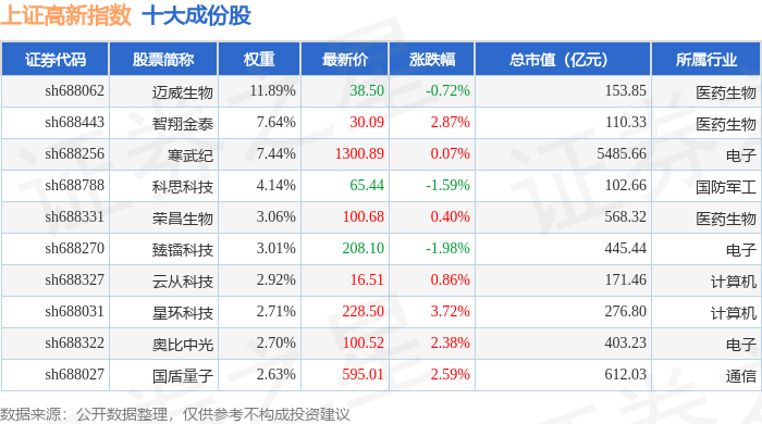 上证高新(000131)指数十大成份股详情如下: