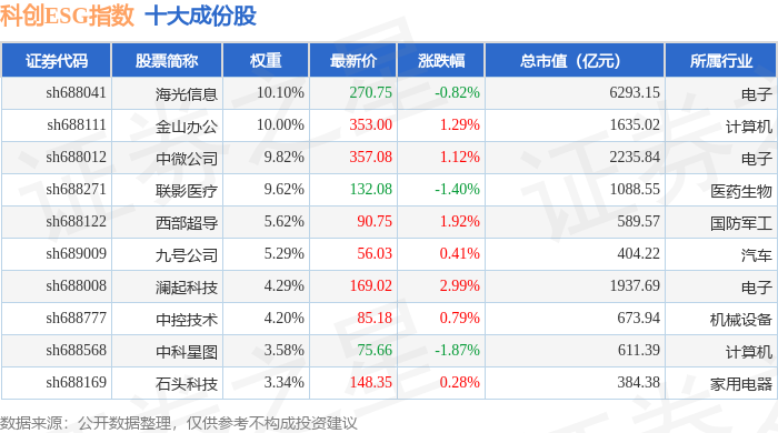 科创ESG(000691)指数十大成份股详情如下: