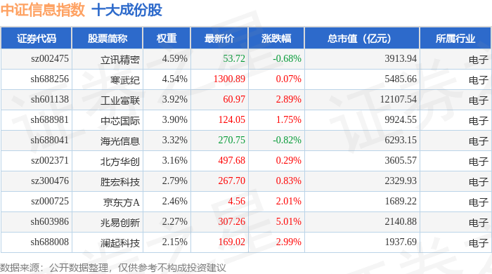 中证信息(000935)指数十大成份股详情如下: