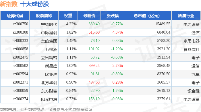 新指数(399100)十大成份股详情如下: