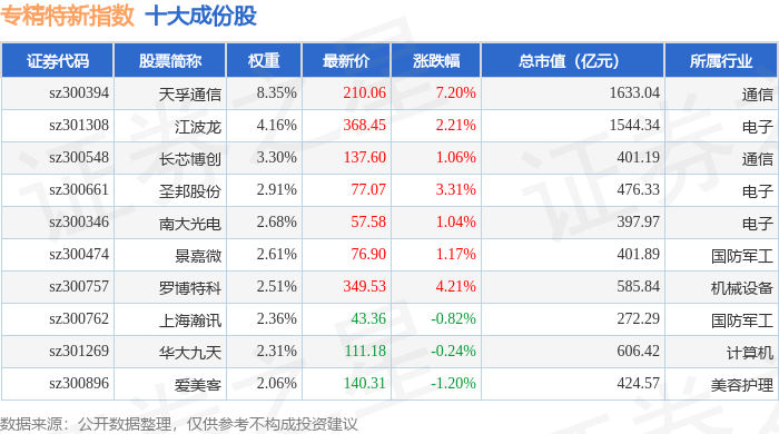 专精特新(399267)指数十大成份股详情如下:
