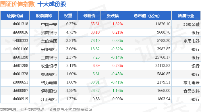 国证价值(399371)指数十大成份股详情如下: