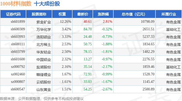 资金流向方面,1000材料(399382)指数成份股当日主力资金净流出合计128.19亿元,游资资金净流入合计16.35亿元,散户资金净流入合计111.84亿元。成份股资金流向详情见下表: