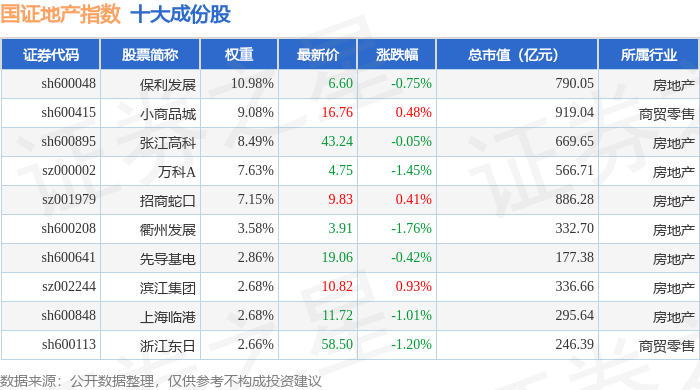 证券之星消息,1月27日,国证地产(399393)指数报收于3264.44点,跌0.87%,成交153.23亿元,换手率1.88%。当日该指数成份股中,上涨的有6家,新黄浦以3.6%的涨幅领涨,下跌的有44家,城建发展以3.94%的跌幅领跌。