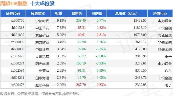 周期100(399402)指数十大成份股详情如下:
