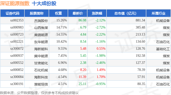 深证能源(399613)指数十大成份股详情如下: