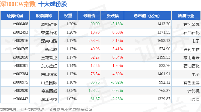 证券之星消息,1月27日,深100EW(399632)指数报收于5428.34点,跌0.41%,成交2651.22亿元,换手率1.53%。当日该指数成份股中,上涨的有27家,天孚通信以7.2%的涨幅领涨,下跌的有72家,智飞生物以6.1%的跌幅领跌。