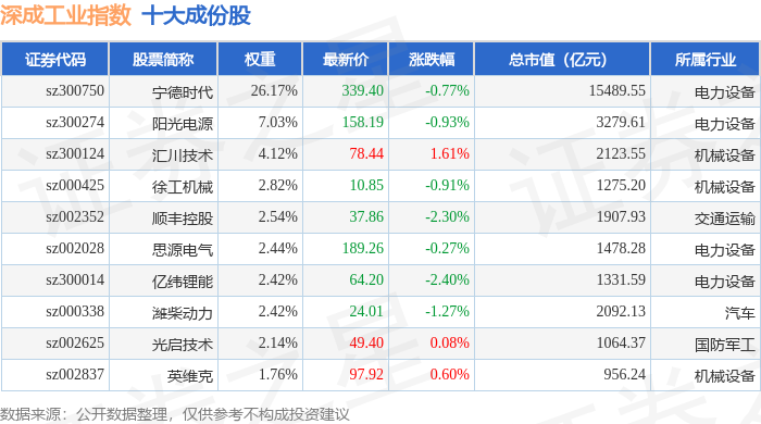 深成工业(399682)指数十大成份股详情如下: