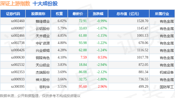 证券之星消息,1月27日,深证上游(399704)指数报收于8298.76点,跌1.48%,成交1180.41亿元,换手率5.93%。当日该指数成份股中,上涨的有8家,湖南黄金以10.01%的涨幅领涨,下跌的有42家,国城矿业以8.2%的跌幅领跌。
