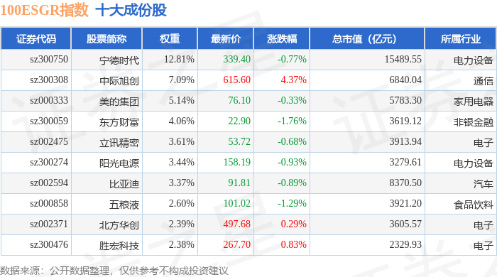 100ESGR(470027)指数十大成份股详情如下: