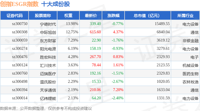 资金流向方面,创指ESGR(470028)指数成份股当日主力资金净流出合计25.24亿元,游资资金净流出合计7.17亿元,散户资金净流入合计32.41亿元。成份股资金流向详情见下表: