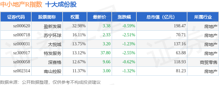 中小地产R(471002)指数十大成份股详情如下:
