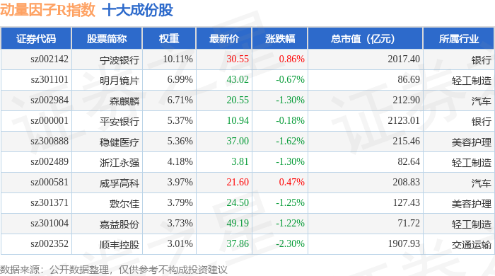 证券之星消息,1月27日,动量因子R(480057)指数报收于2990.73点,跌0.52%,成交260.83亿元,换手率1.55%。当日该指数成份股中,上涨的有14家,智微智能以5.0%的涨幅领涨,下跌的有36家,千红制药以2.5%的跌幅领跌。