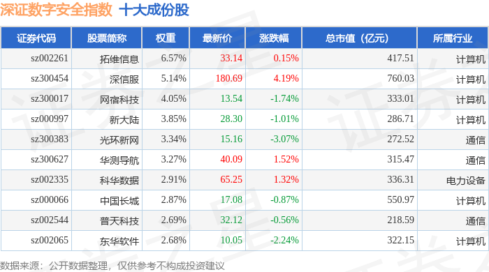 深证数字安全(970052)指数十大成份股详情如下: