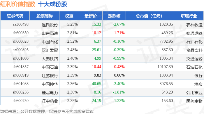 证券之星消息,1月27日,红利价值(980103)指数报收于3220.53点,跌0.64%,成交541.92亿元,换手率0.55%。当日该指数成份股中,上涨的有10家,亿联网络以5.36%的涨幅领涨,下跌的有37家,温氏股份以2.67%的跌幅领跌。