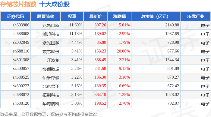 存储芯片(980138)指数十大成份股详情如下: