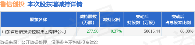 证券之星消息,1月27日鲁信创投发布公告《鲁信创投:鲁信创投关于持股5%以上股东权益变动触及1%刻度的提示性公告》,其股东山东省鲁信投资控股集团有限公司于2026年1月20日至2026年1月27日间合计减持277.9万股,占公司目前总股本的0.3733%,变动期间该股股价下跌5.42%,截止1月27日收盘报24.6元。