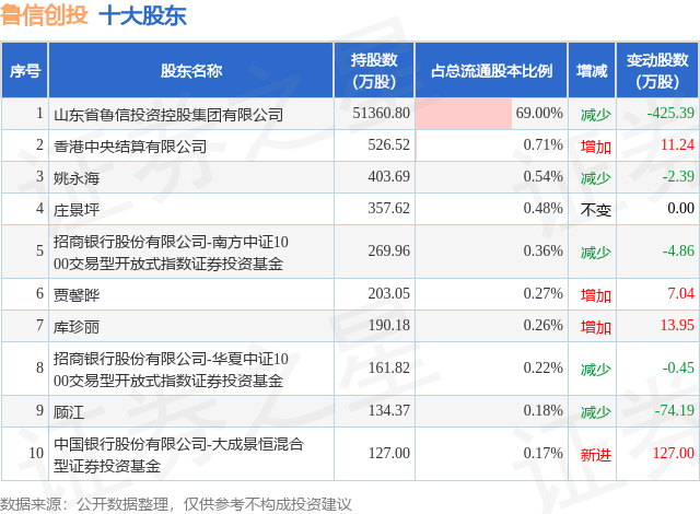 根据鲁信创投2025年三季报公布的十大股东详情如下:
