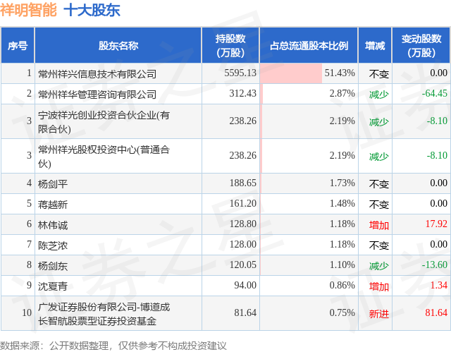 根据祥明智能2025年三季报公布的十大股东详情如下:
