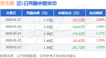 证券之星消息,1月27日,安杰思(688581)融资买入1222.74万元,融资偿还850.27万元,融资净买入372.47万元,融资余额1.36亿元,近20个交易日中有13个交易日出现融资净买入。
