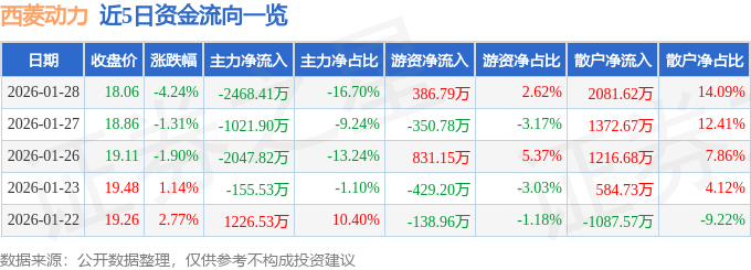 证券之星消息,截至2026年1月28日收盘,西菱动力(300733)报收于18.06元,下跌4.24%,换手率3.58%,成交量8.07万手,成交额1.48亿元。