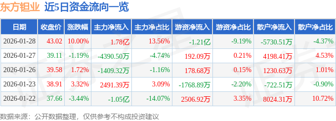 1月28日的资金流向数据方面,主力资金净流入1.78亿元,占总成交额13.56%,游资资金净流出1.21亿元,占总成交额9.19%,散户资金净流出5730.51万元,占总成交额4.37%。