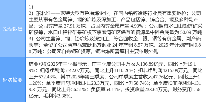 该股为有色 · 锌,有色 · 铜,有色金属概念热股,当日有色 · 锌概念上涨7.79%,有色 · 铜概念上涨6.24%,有色金属概念上涨3.62%。