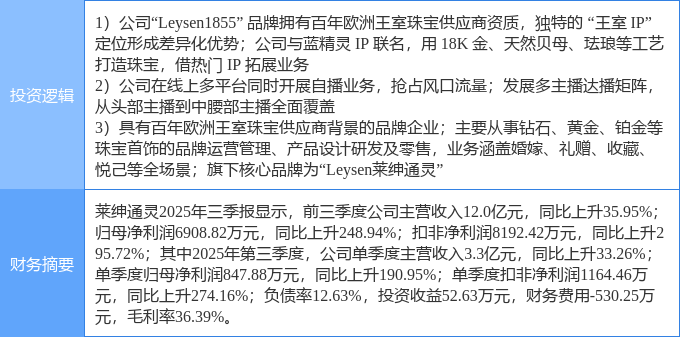 该股为珠宝饰品,IP经济/谷子经济,网红/MCN概念热股,当日珠宝饰品概念上涨8.01%。