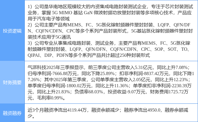 证券之星消息,气派科技1月28日涨停收盘,收盘价33.97元。该股于9点34分涨停,未打开涨停,截止收盘封单资金为197.7万元,占其流通市值0.05%。