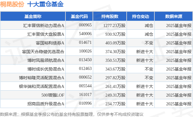 根据2025基金年报公募基金重仓股数据,重仓该股的公募基金共62家,其中持有数量最多的公募基金为汇丰晋信基金的汇丰晋信新动力混合A。汇丰晋信新动力混合A目前规模为21.49亿元,最新净值2.3415(1月27日),较上一交易日下跌0.36%,近一年上涨43.68%。该公募基金现任基金经理为闵良超。闵良超在任的基金产品包括:汇丰晋信2026周期混合,管理时间为2021年9月30日至今,期间收益率为27.1%;汇丰晋信大盘股票A,管理时间为2023年3月18日至今,期间收益率为51.69%;汇丰晋信沪港深A,管理时间为2024年9月14日至今,期间收益率为78.22%。