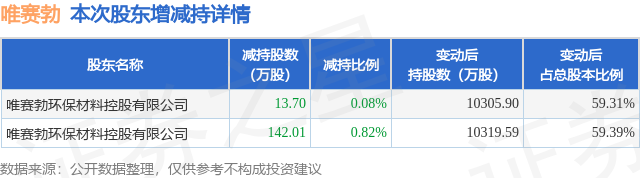 根据唯赛勃2025年三季报公布的十大股东详情如下: