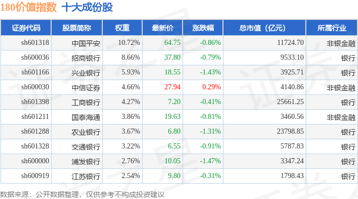 证券之星消息,1月28日,180价值(000029)指数报收于4277.87点,涨0.15%,成交1444.58亿元,换手率0.76%。当日该指数成份股中,上涨的有27家,中国铝业以10.02%的涨幅领涨,下跌的有29家,华域汽车以2.53%的跌幅领跌。