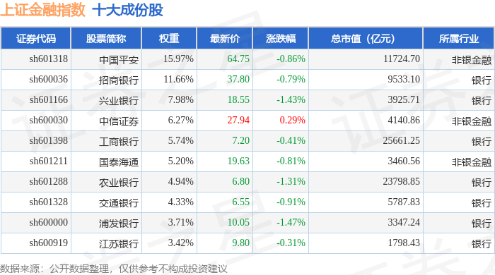 上证金融(000038)指数十大成份股详情如下: