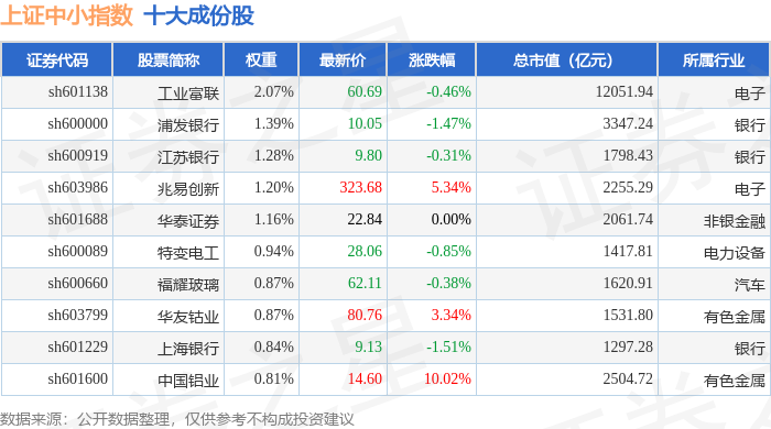 上证中小(000046)指数十大成份股详情如下: