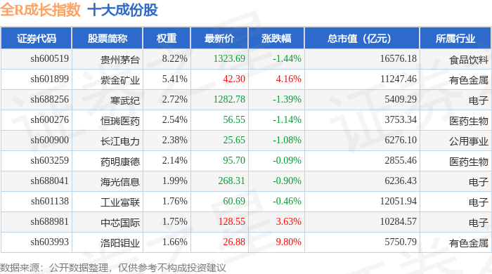 全R成长(000059)指数十大成份股详情如下: