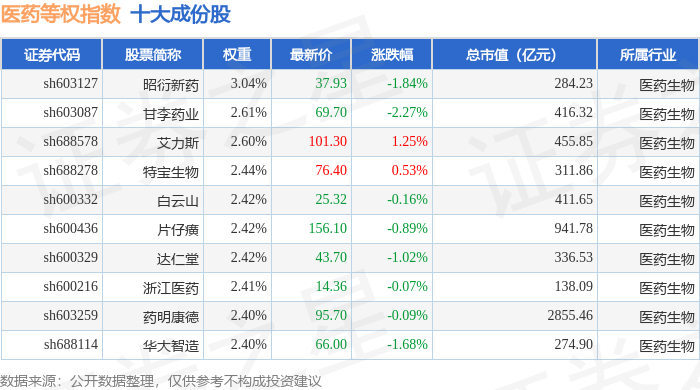 资金流向方面,医药等权(000075)指数成份股当日主力资金净流出合计15.74亿元,游资资金净流入合计6.76亿元,散户资金净流入合计8.98亿元。成份股资金流向详情见下表: