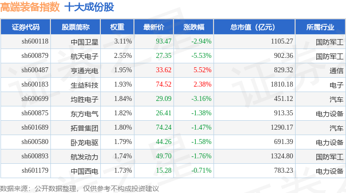 资金流向方面,高端装备(000097)指数成份股当日主力资金净流出合计19.32亿元,游资资金净流入合计9.99亿元,散户资金净流入合计9.33亿元。成份股资金流向详情见下表: