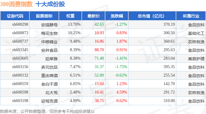 证券之星消息,1月28日,380消费(000108)指数报收于12750.37点,涨0.34%,成交51.81亿元,换手率1.44%。当日该指数成份股中,上涨的有10家,北大荒以4.59%的涨幅领涨,下跌的有8家,养元饮品以1.75%的跌幅领跌。