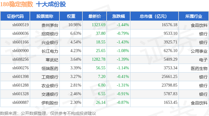 180稳定(000125)指数十大成份股详情如下: